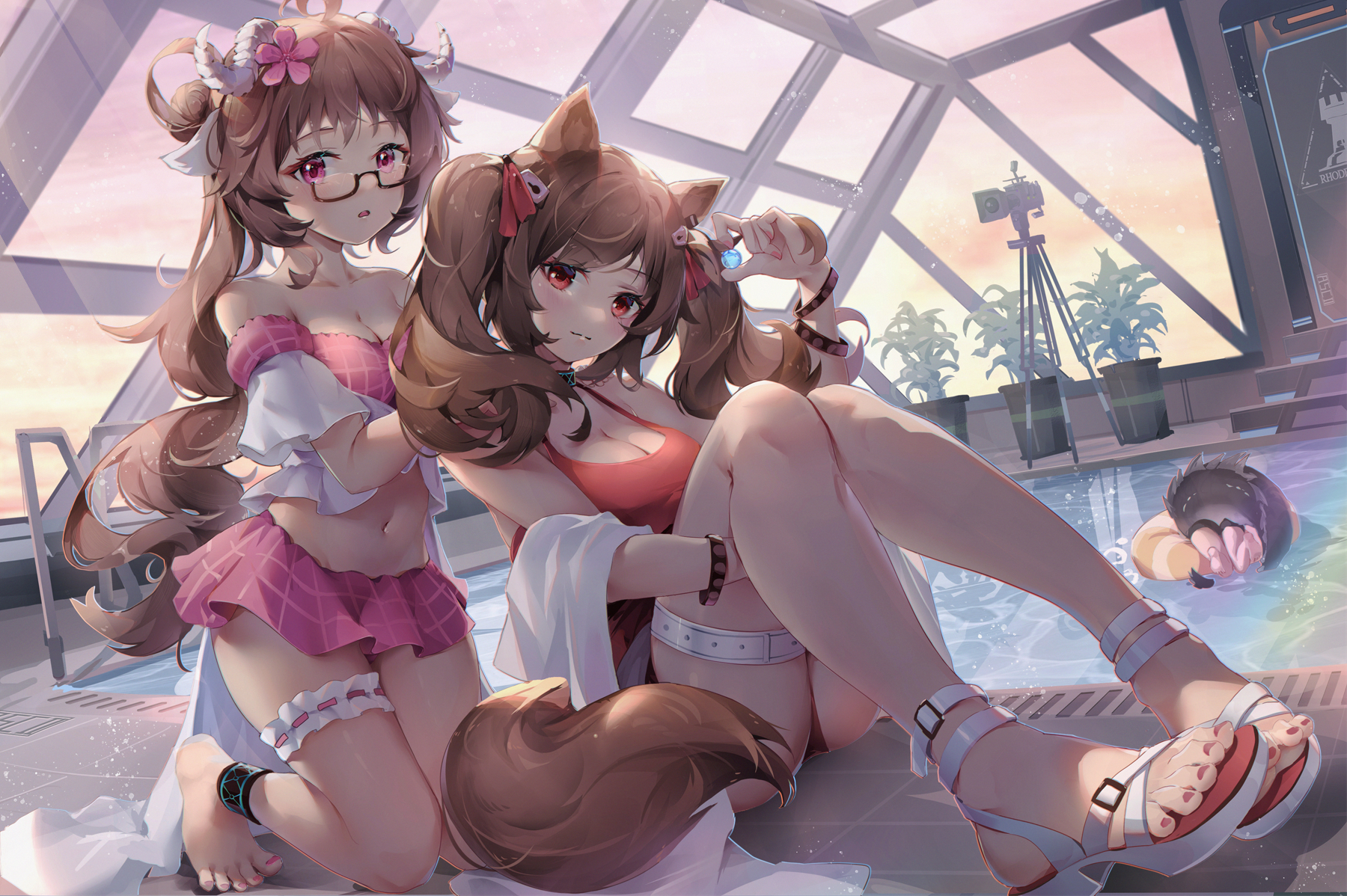 Anime picture arknights eyjafjalla (arknights) eyjafjalla (summer flowers) (arknights) kanose single long hair tall image looking at viewer .